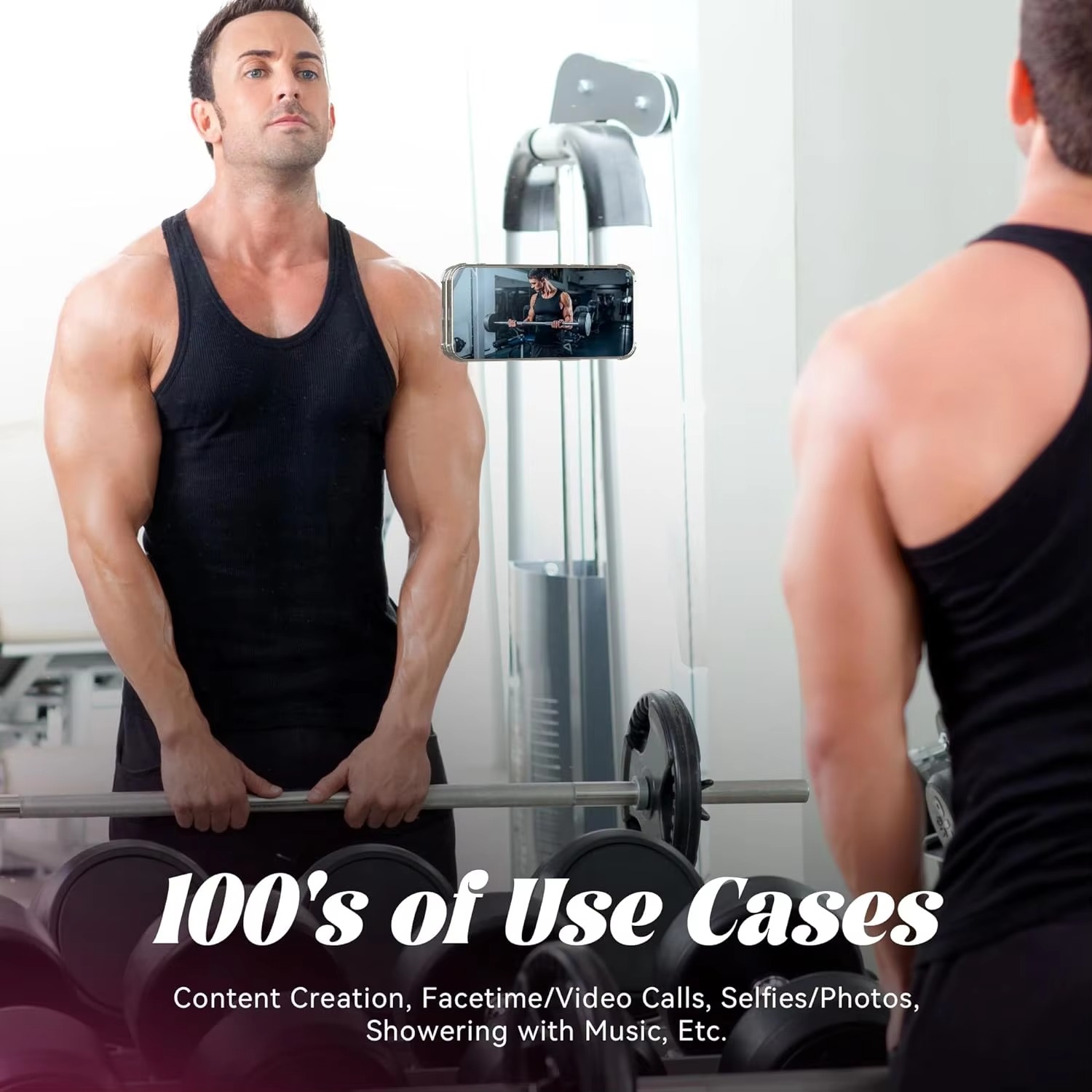 The both-side suction system allows flexible placement on mirrors, glass, tiles, desks, or other flat surfaces, making it a practical accessory for multitasking. Simply attach your phone and enjoy hands-free convenience for video calls, content streaming, makeup tutorials, or GPS navigation.